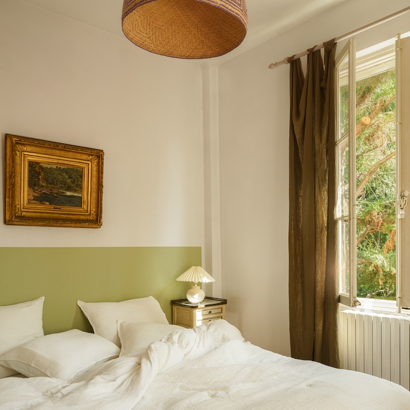 Rideau raffiné, un brin bohème avec son liseré point cheval uniquement sur le haut.