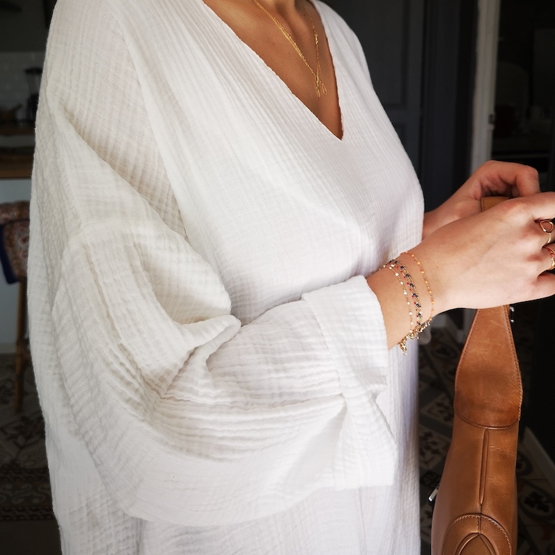 En sortie de bain, robe courte de plage, ou en top long à porter un peu loose décontractée