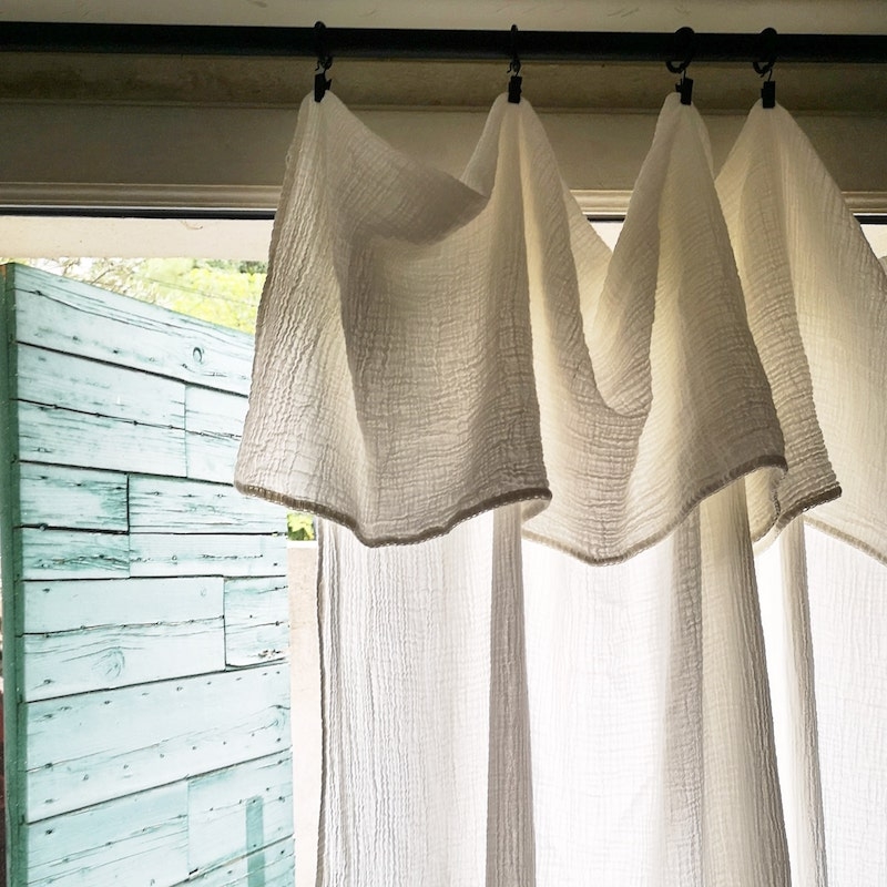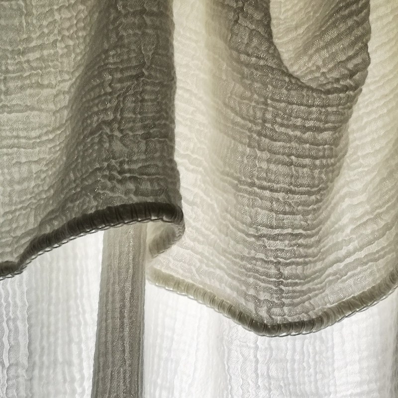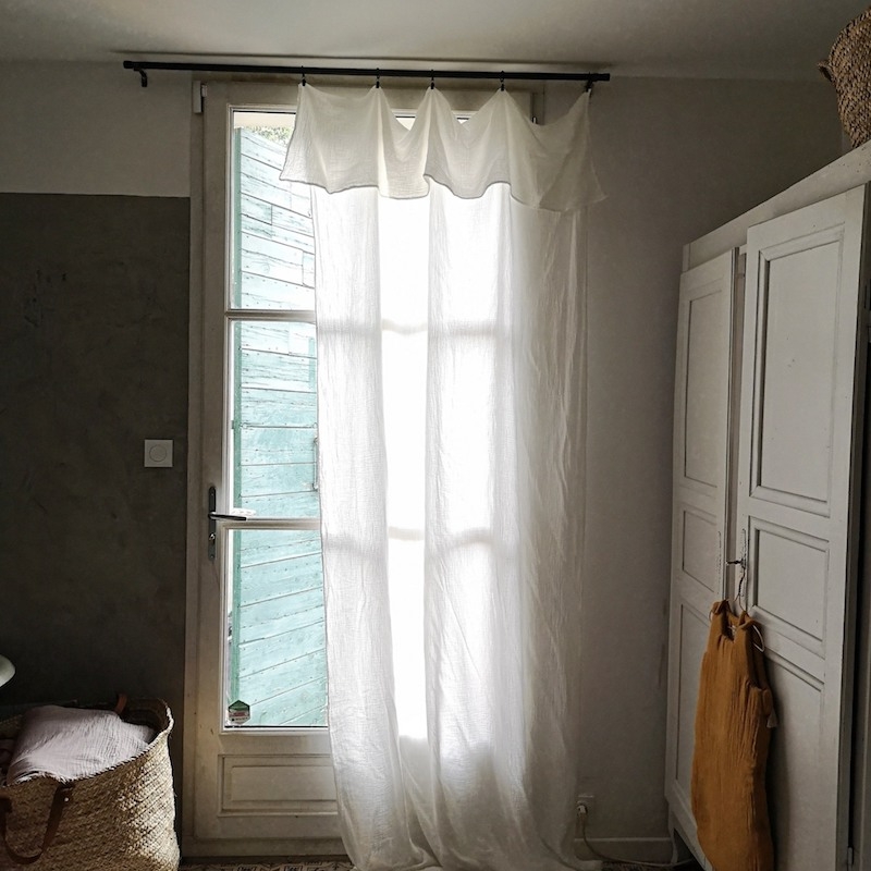 100% double gaze de coton, finition point cheval écru ton sur ton en haut, a ajuster selon la hauteur que vous aimez avec ou sans volant, lavage doux 30°
